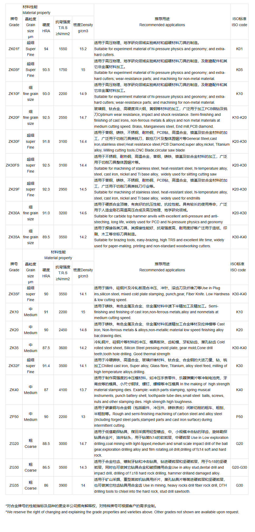 Carbide Grades and Specifications